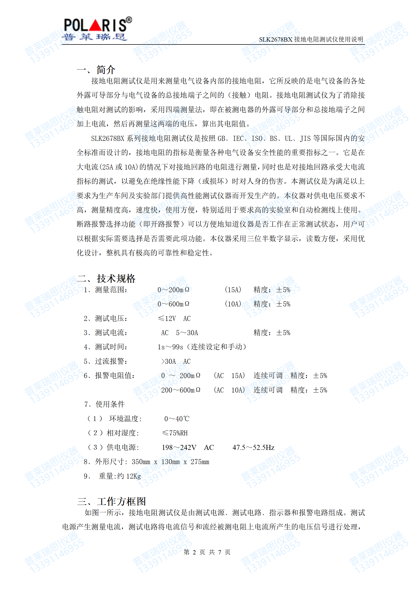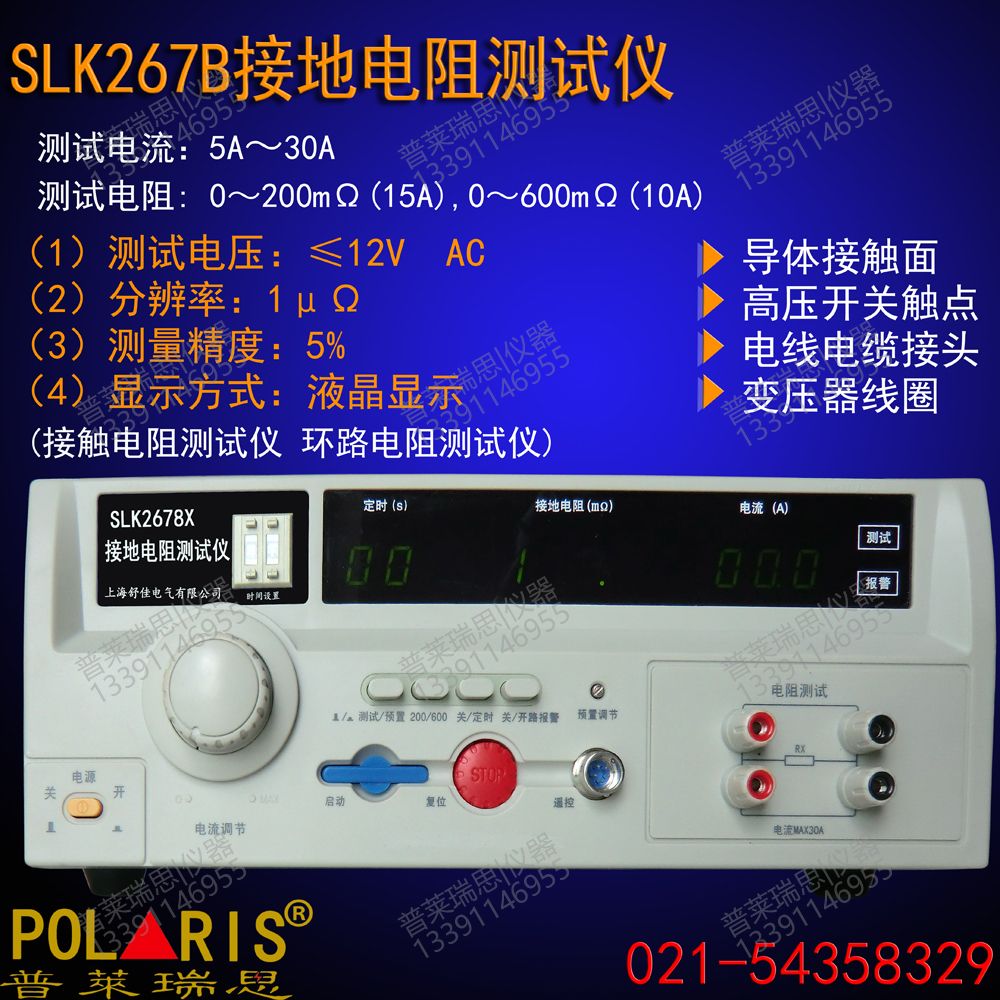 SLK2678BX系列接地电阻测试仪是按照GB﹑IEC﹑ISO﹑BS﹑UL﹑JIS等国际国内的安全标准而设计的,接地电阻的指标是衡量各种电气设备安全性能的重要指标之一。它是在大电流(25A或10A)的情况下对接地回路的电阻进行测量,同时也是对接地回路承受大电流指标的测试,以避免在绝缘性能下降(或损坏)时对人身的伤害。本测试仪是为满足以上要求为生产车间及实验部门提供高性能测试仪器而开发生产的。本仪器对供电电压要求不高,测量精度高,速度快,使用方便,特别适用于要求高的实验室和自动检测线上使用。断路报警选择功能(即开路报警)可以方便地知道仪器是否工作在正常测试状态,用户可以根据实际需要选择是否需要此项功能。本仪器采用三位半数字显示,读数方便,采用优化设计,整机具有极高的可靠性和稳定性。