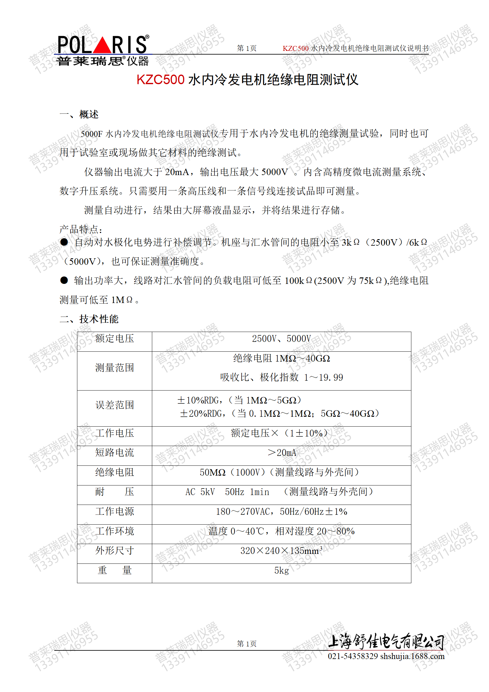 5000F水内冷发电机绝缘电阻测试仪专用于水内冷发电机的绝缘测量试验,同时也可用于试验室或现场做其它材料的绝缘测试。